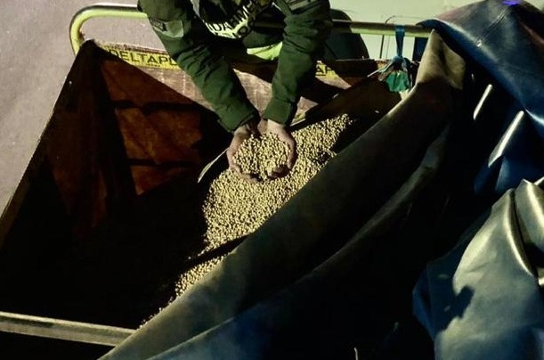 Inmediatamente, los uniformados pudieron constatar que se trataba de soja a granel, con un peso total de 30.200 kilos valuada en 11.778.000 pesos argentinos.